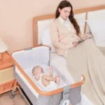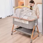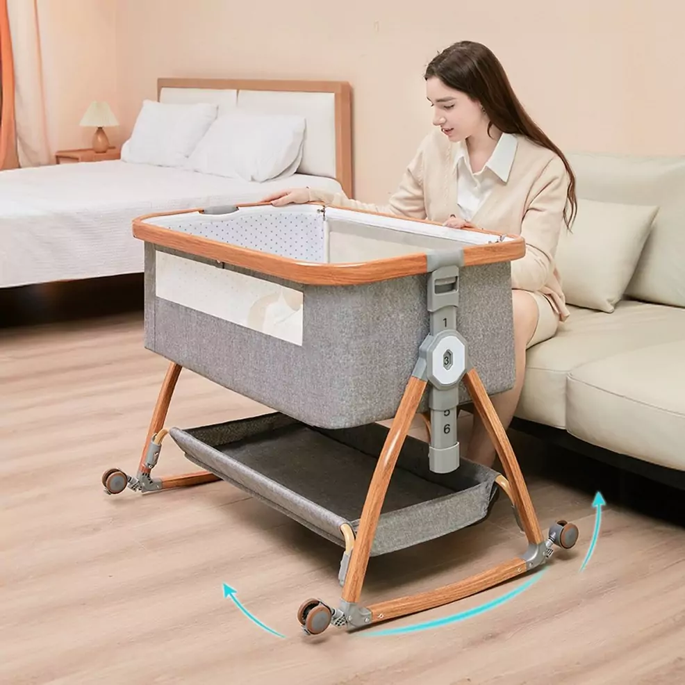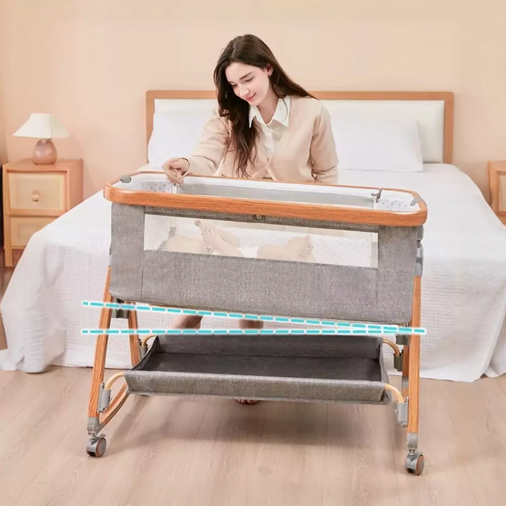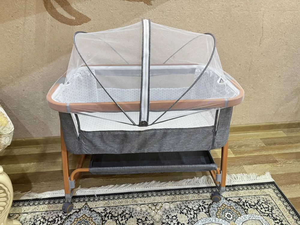 Це ліжечко для немовлят дає змогу завжди бути поруч із дитиною. Ви можете годувати малюка вночі, не встаючи з ліжка, а функція нахилу допомагає уникнути зригувань. Коліщатка забезпечують легке переміщення, а москитна сітка робить сон спокійним навіть у літній період.