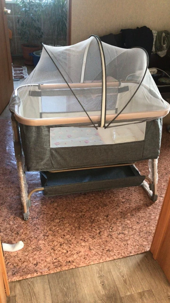 Ліжечко прийшло вчасно, всі комплектуючі на місці. Зібрали за 5 хвилин. Зручно що можна поставити поруч із ліжком і видно малюка.