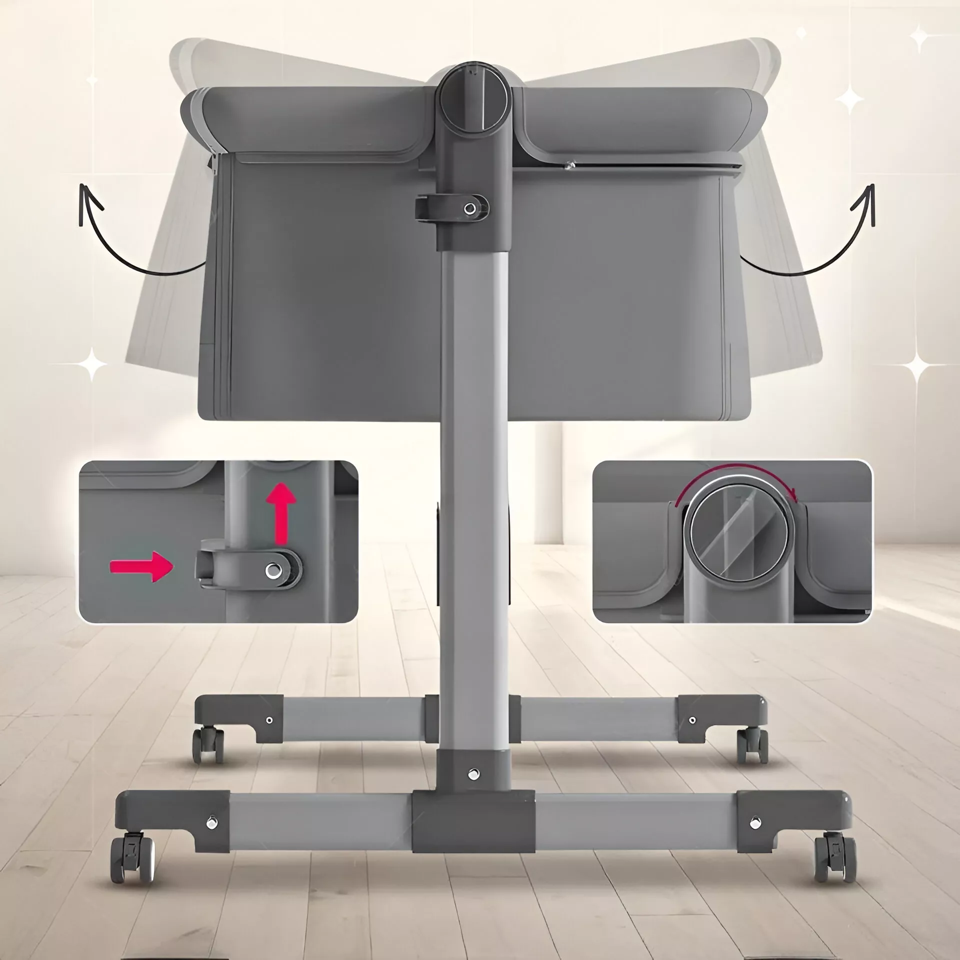 | Особливості меблів | складна конструкція; на коліщатах з можливістю блокування; маятникова система; регулювання висоти дна |