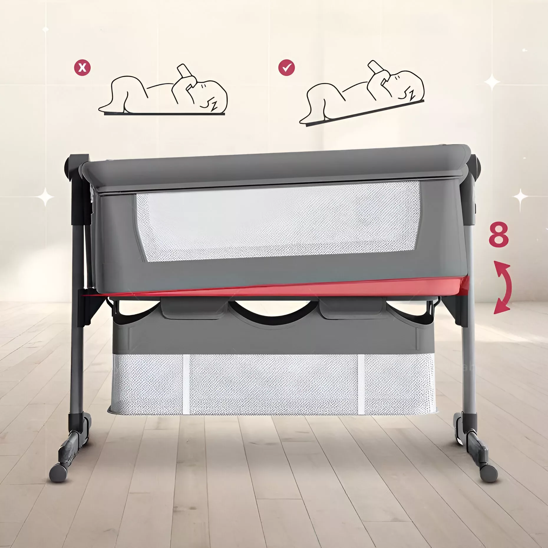 Завдяки знімному бортику HK-0008 легко перетворюється на приставне ліжечко до батьківського ліжка. Це ідеальне рішення для нічних годувань та спільного сну, коли малюк завжди поруч, але у власному безпечному просторі.