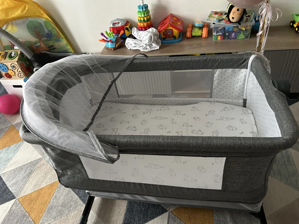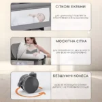 У комплект входить москітна сітка, яка захищає малюка від комах і пилу. Ліжечко легко складається, не займає багато місця та підходить як для щоденного використання, так і для поїздок.