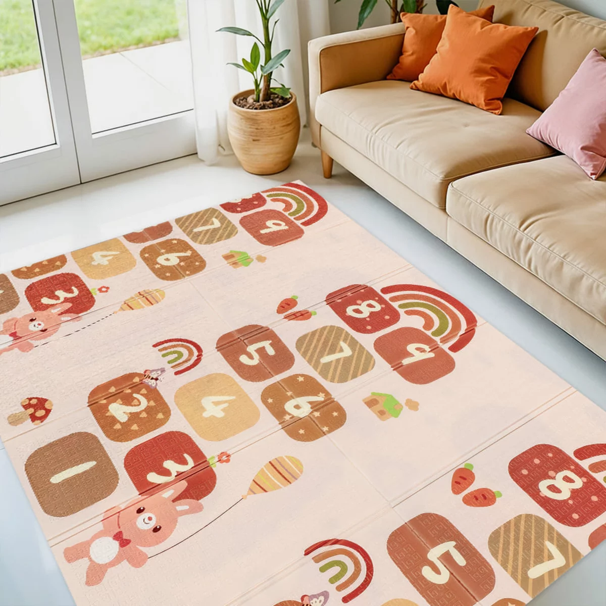- Широкий вибір кольорів для хлопчиків і дівчаток, кожній дитині буде цікаво розглядати малюнок килимка. Також можна підібрати забарвлення під інтер’єр кімнати.